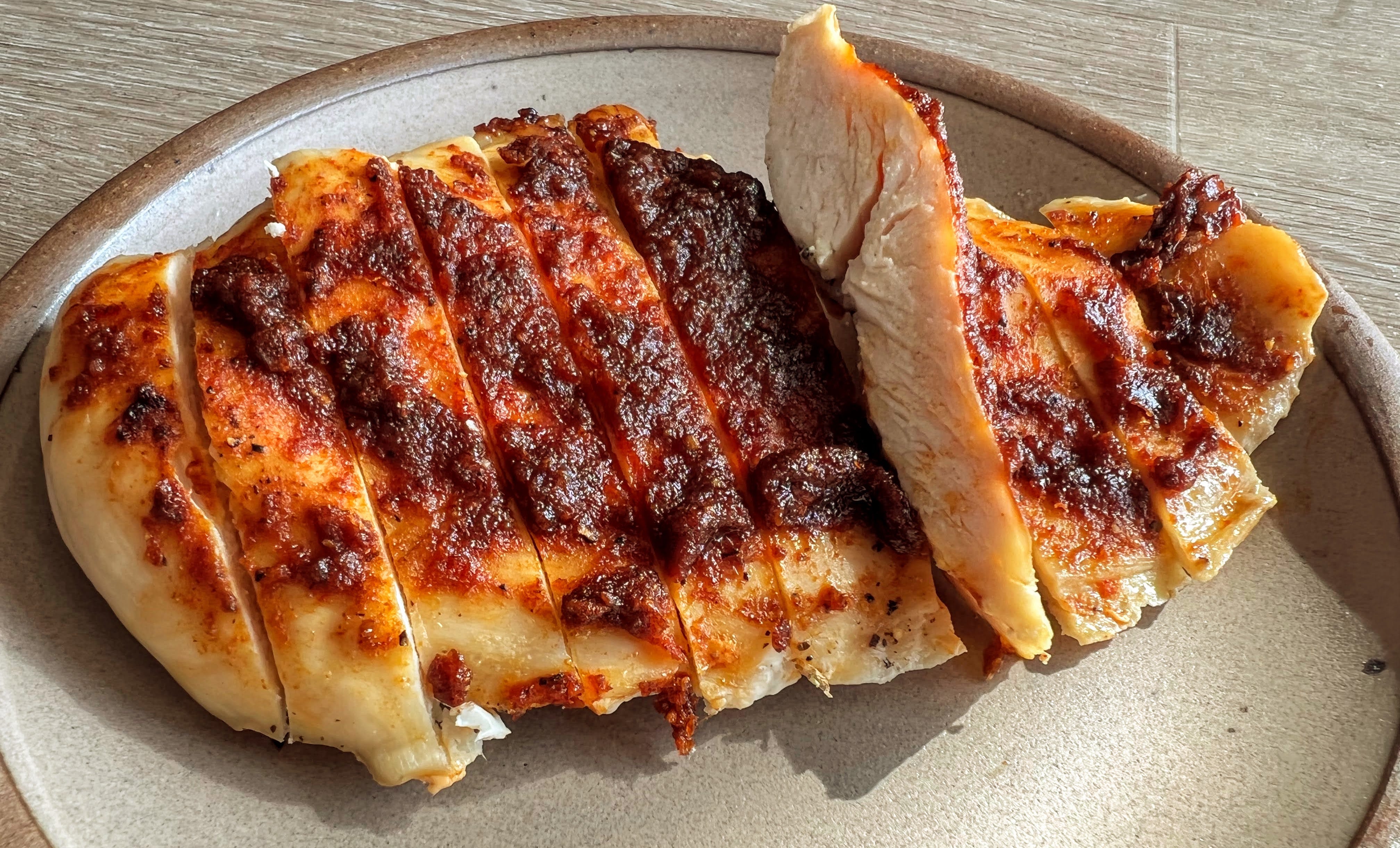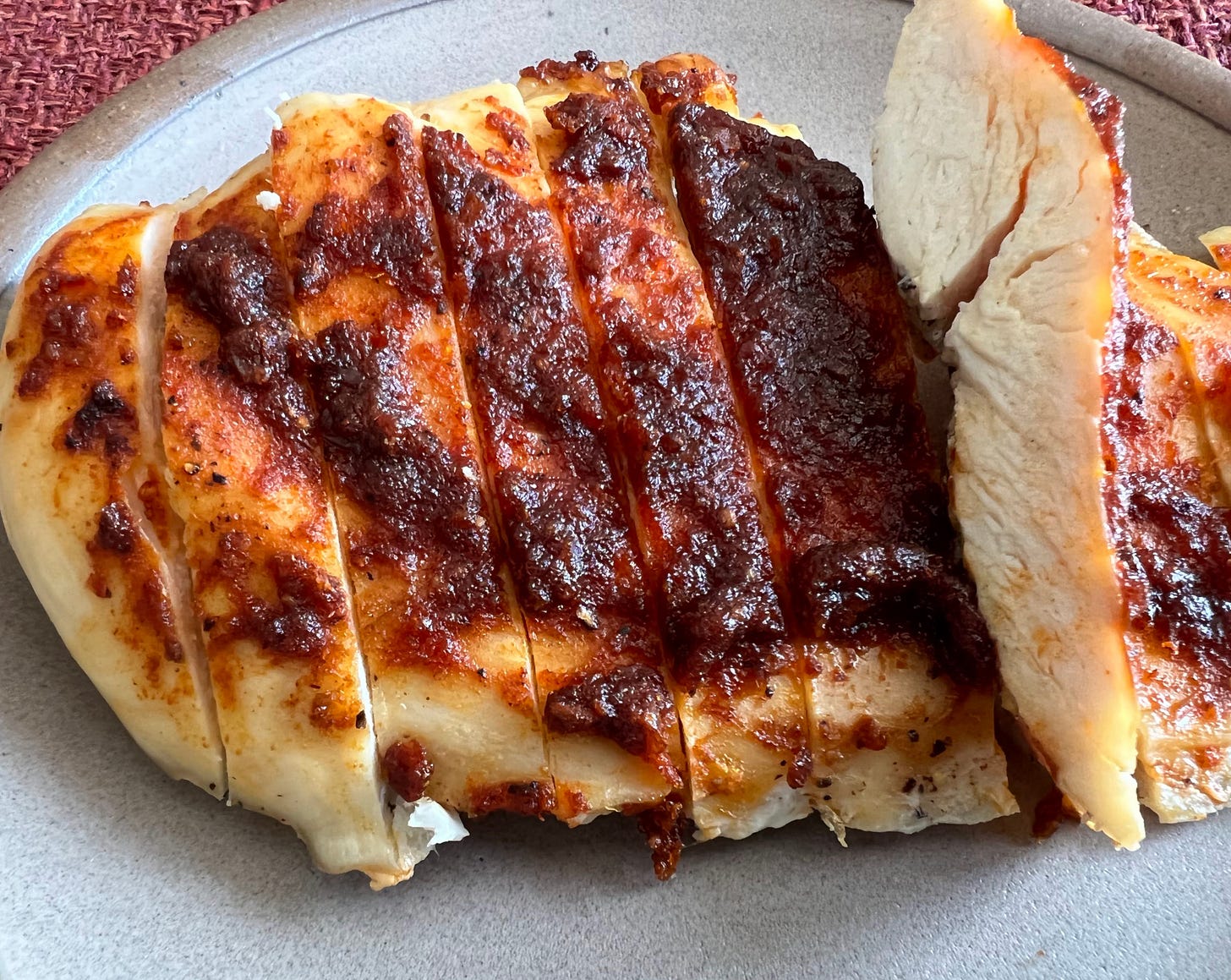 Bake the chicken breasts for 30mins, rest for 2mins and serve warm.