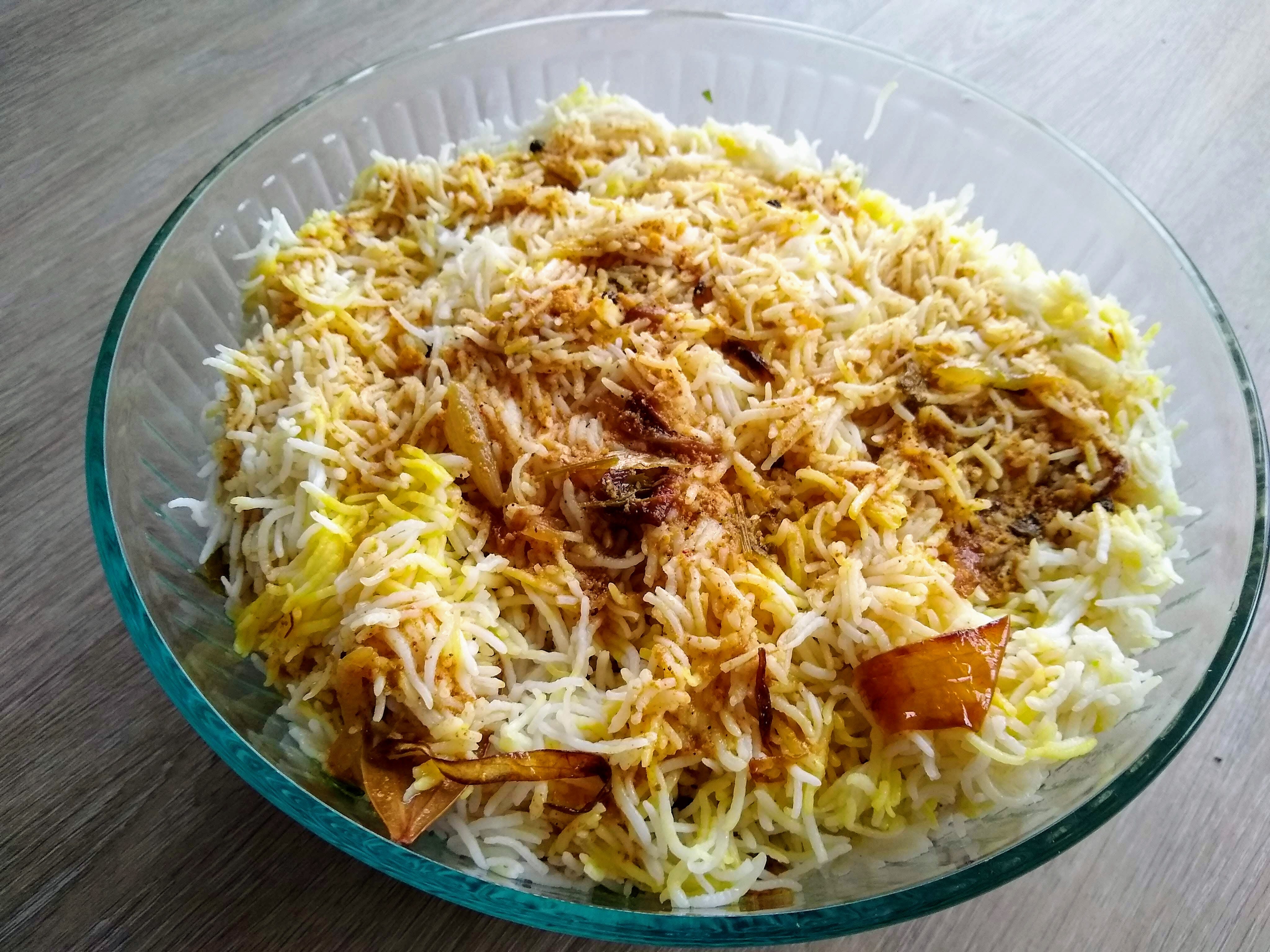This is a super easy and delicious biryani recipe I learned from my Mom. Caramelized onions add all the magic, so take your time while preparing the onions.