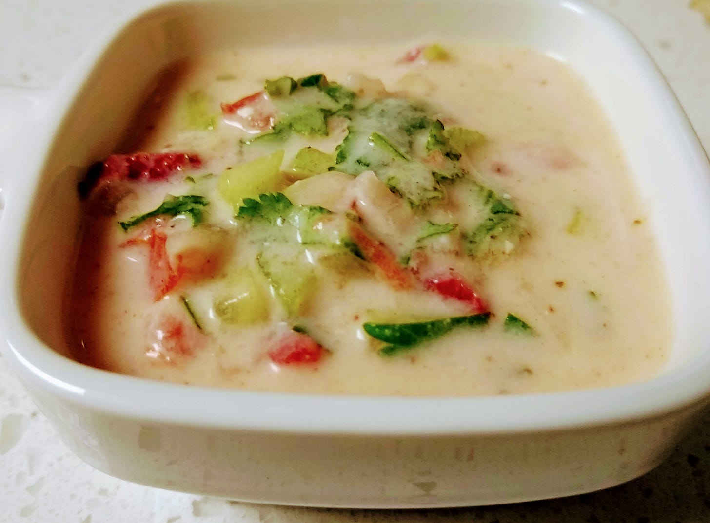 This is a family favorite raita recipe. Cucumbers add all the magic in this recipe but my secret ingredient is the strawberries. This is a great side for Biryani or any other spicy curry dishes.